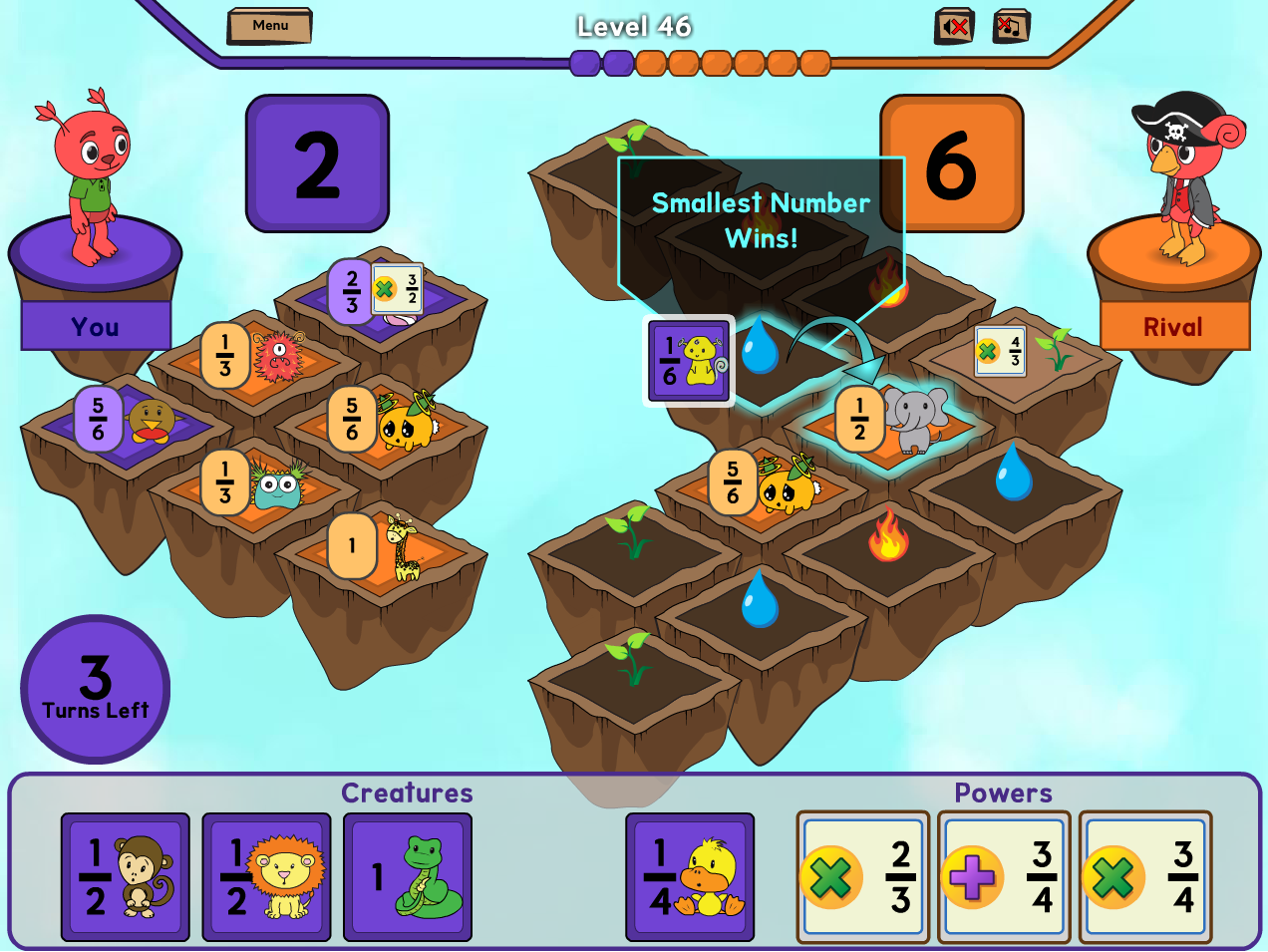 Creature Capture is a multiplayer game in which you play against another player or an AI. As we developed the game we put significant effort into making this experience fun and engaging. When it was ready, we started doing play tests with players challenging their friend to a duel in Creature Capture. Kids loved it! So we decided to put it to the test it against Treefrog Treasure in a play test.