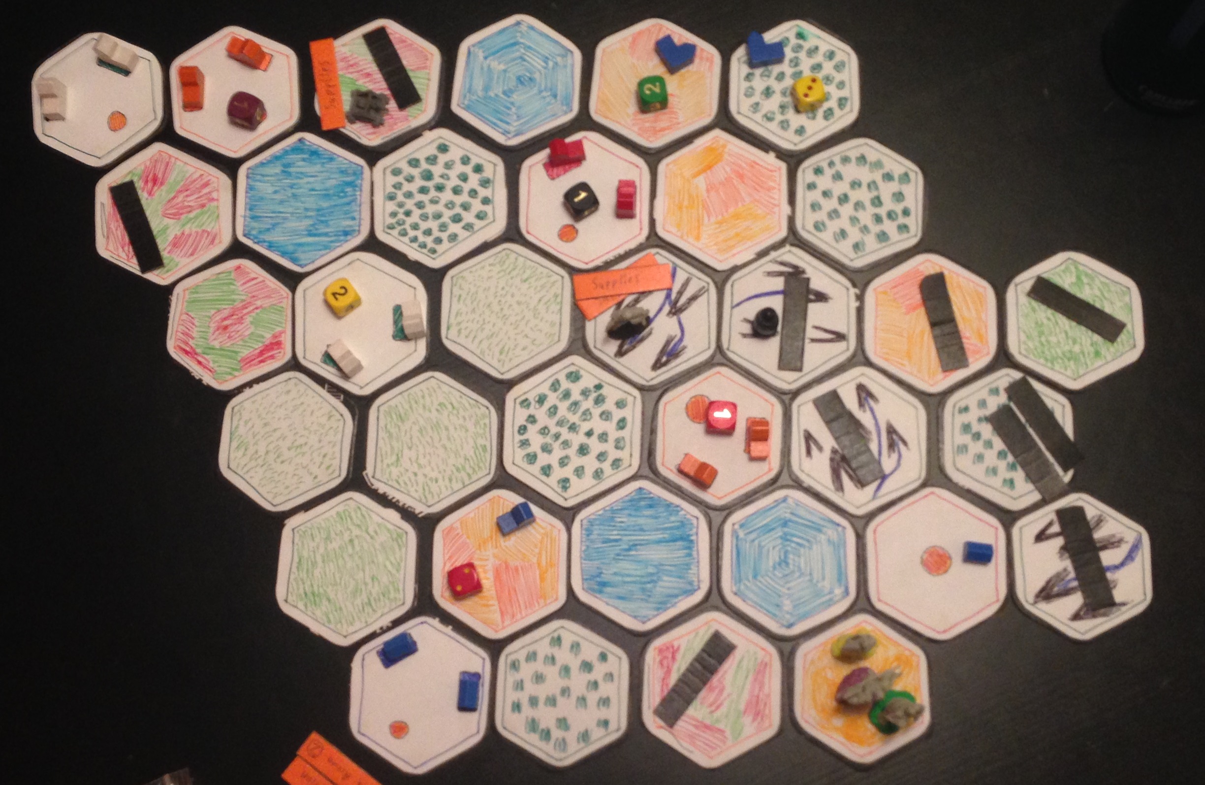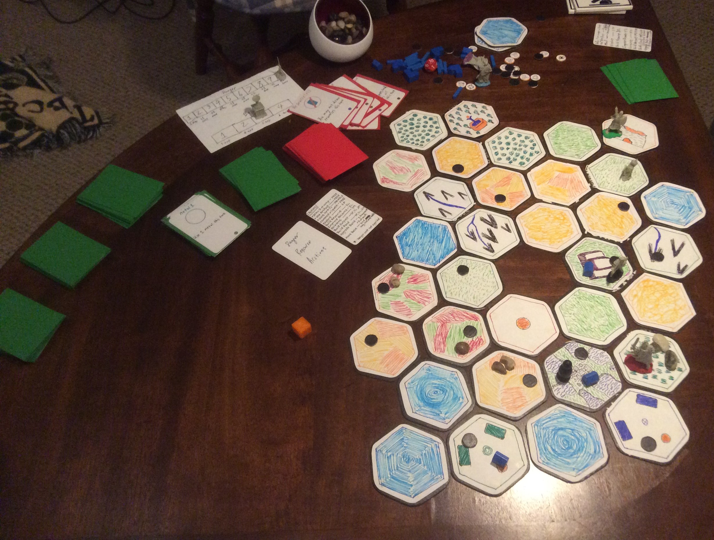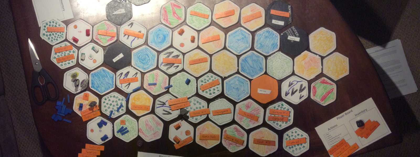 Biomes is a game about discovery, exploration, danger, and teamwork. In Biomes players take on the role of an explorer by exploring an enclosed bio-sphere, discovering its secrets, combating the dangers, and continuing to the next bio-sphere. As a video game players will control a tribe of explorers going from bio-sphere to bio-sphere for an as yet undetermined reason with each bio-sphere being a level. As a board game players cooperatively control one member of the tribe each as they explore, quest, and escape the bio-sphere, simulating one level of the video game.