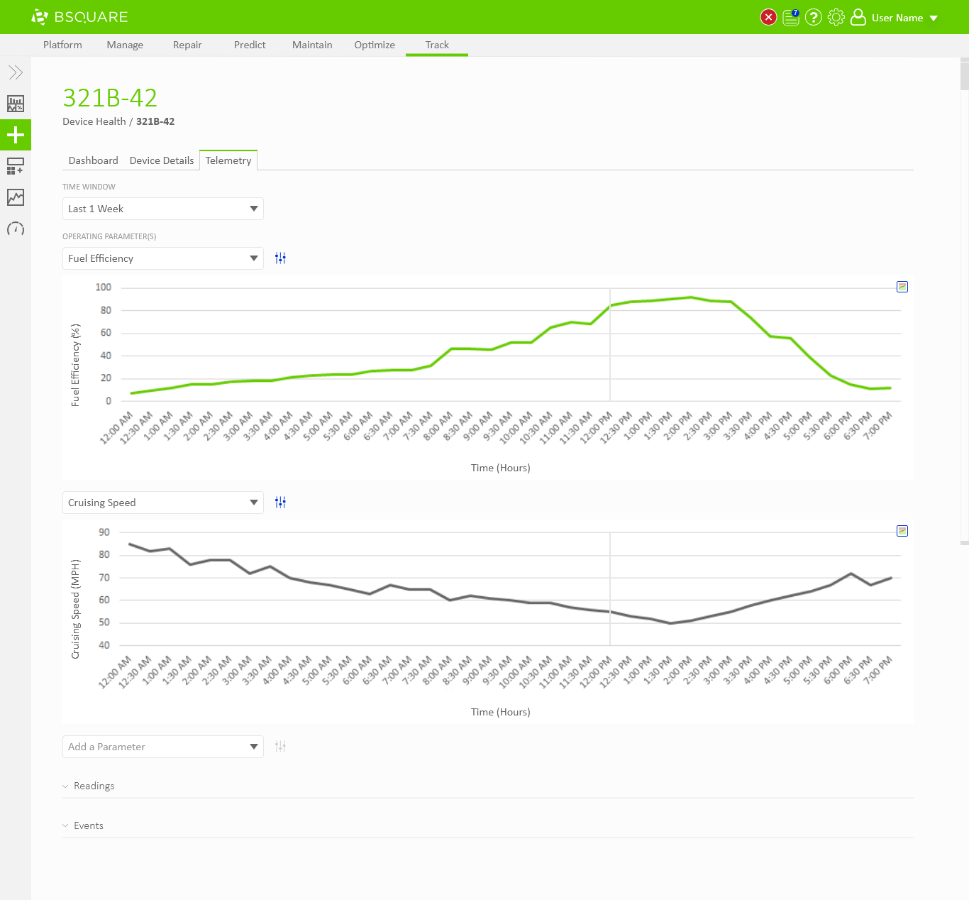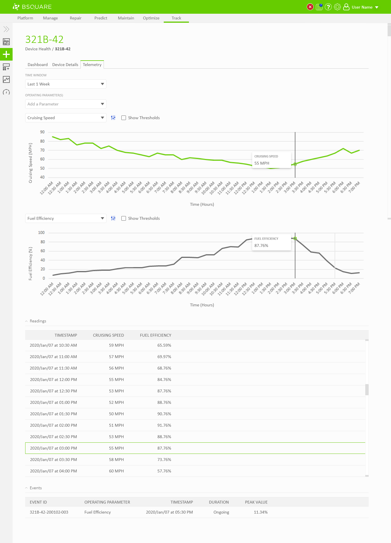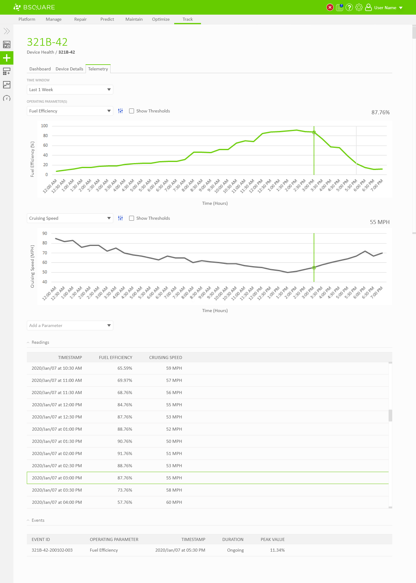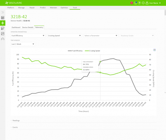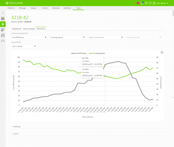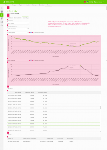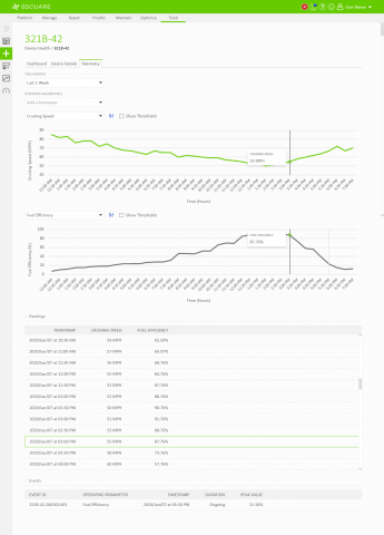 In DataV Track we needed to display telemetry data coming from the devices. Field technicians would need to use DataV Track to view recent telemetry around events, such as alarms thrown by the device, to resolve problems at the device. Business analysts would also use DataV Track to view telemetry data as a part of analyzing asset performance, identifying anomalies, and troubleshooting problems on their devices. In both situations, users would regularly need the ability to chart and compare telemetry values through DataV.