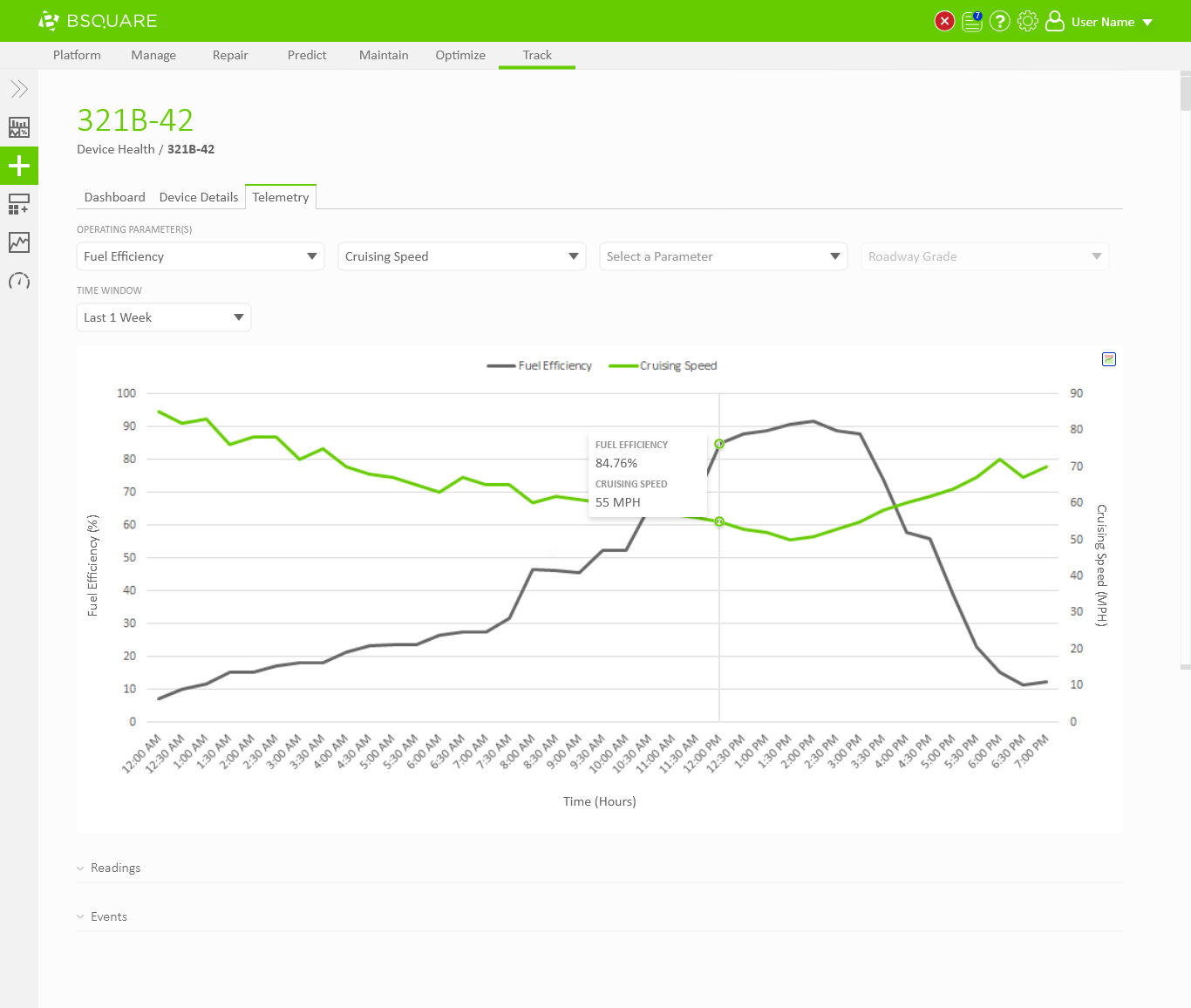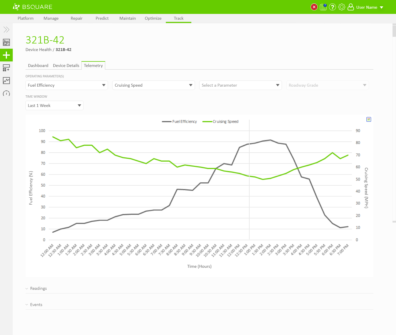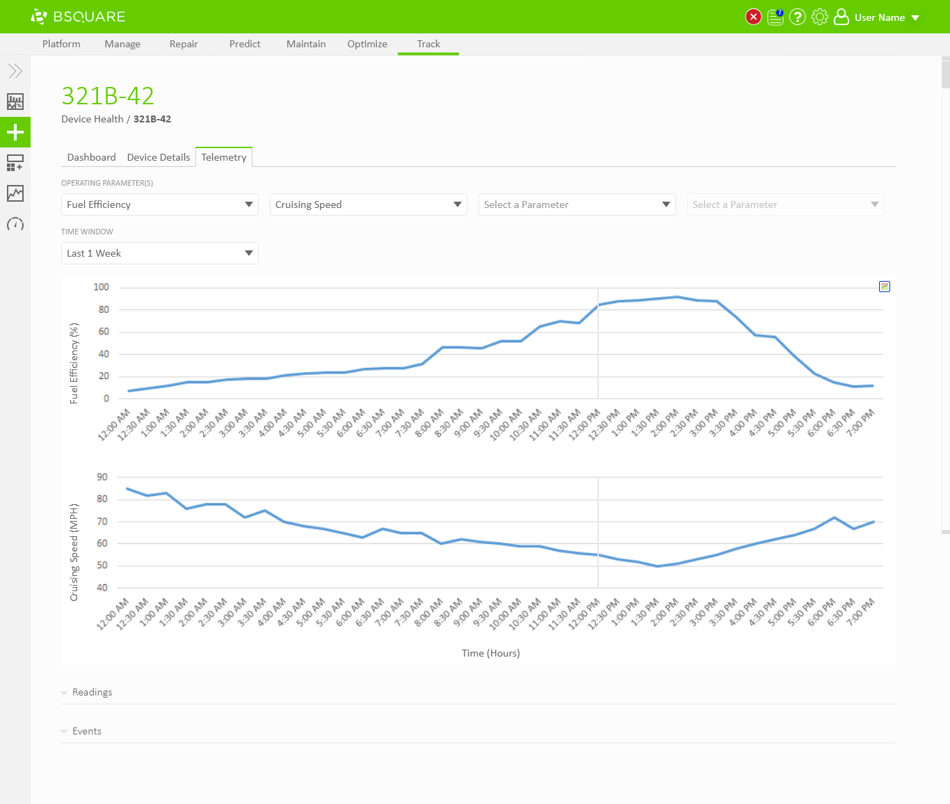 In DataV Track we needed to display telemetry data coming from the devices. Field technicians would need to use DataV Track to view recent telemetry around events, such as alarms thrown by the device, to resolve problems at the device. Business analysts would also use DataV Track to view telemetry data as a part of analyzing asset performance, identifying anomalies, and troubleshooting problems on their devices. In both situations, users would regularly need the ability to chart and compare telemetry values through DataV.